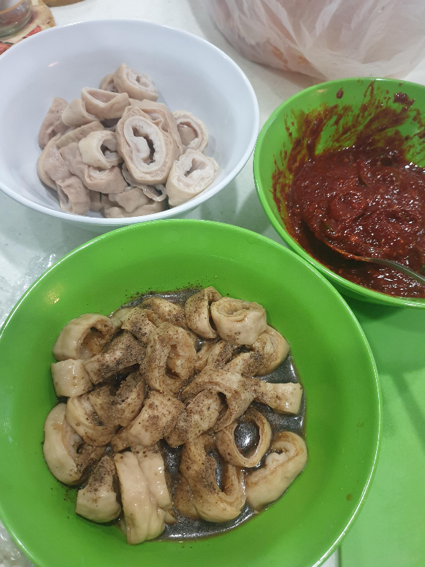 돼지막창이 너무 땡겨서 동생이랑 사 와서 해 먹음. 손질하는 건 번거롭지만, 진심 쫀마탱. 동생이 다 손질해 줘서 편하게 잘무금^^