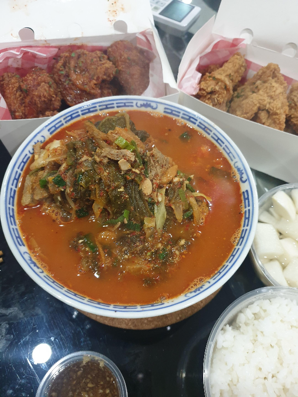 전날 얼큰하게 마신술에 해장이 필요했던 나는 뼈다귀해장국도 같이 시켜 먹자고 했다.